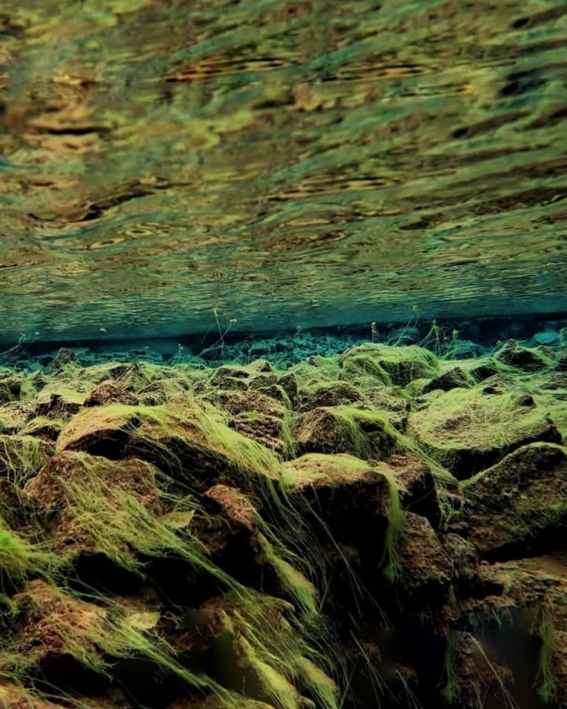 Cold water algae grow slowly but steadily. Many species form thin layers on rock surfaces and feed on sunlight passing through incredibly clear water. In places like Silfra, where visibility can exceed 100 meters, this visibility allows algae to perform photosynthesis even at great depths.