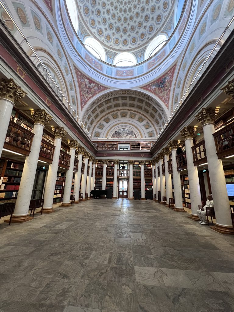 Bir noktada yolunuz ister istemez şehrin simgelerinden birine çıkıyor: Helsinki Katedrali ( Helsingin Tuomiokirkko ) Senato Meydanı’nın üzerinde yükselen bu beyaz yapı, abartısız ama etkileyici. Sanki gökyüzünü yansıtmak için yapılmış gibi bütün heybetiyle şehri selamlıyor. Tam karşısında beni en çok etkileyen Finlandiya Milli Kütüphanesi (Kansalliskirjasto).
