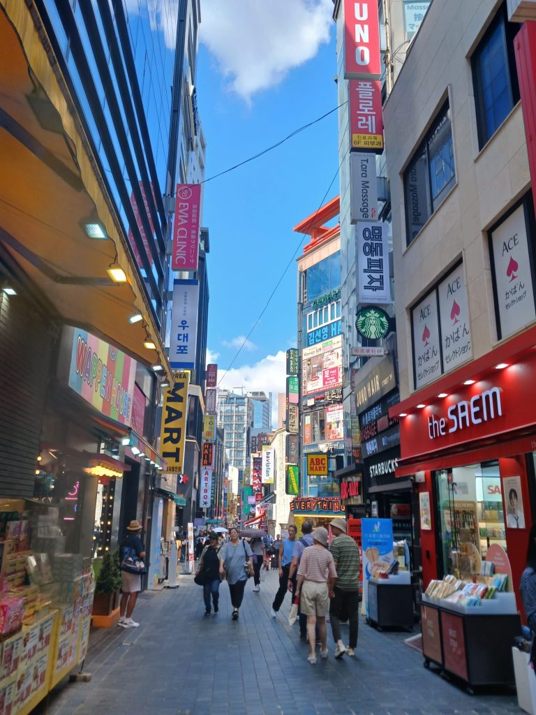 Kısa bir metro yolculuğu sonrası Itaewon’a geçtik. Geniş bir cadde üzerinde kebap salonları, unlu mamuller, baklava ve lokum çeşitleri; et, tavuk ve döner yiyebileceğiniz birçok Türk işletmesine rastlıyorsunuz. Sabah kahvaltımızı yaptığımız pastanede çok sayıda Türk müşteri de vardı.