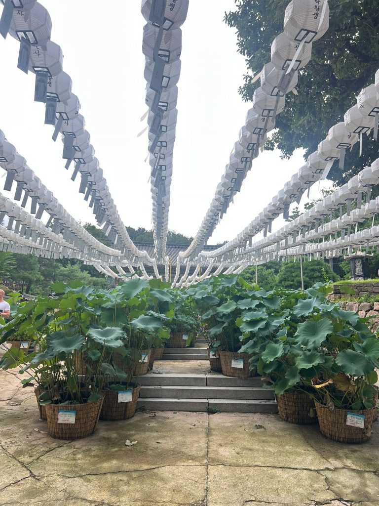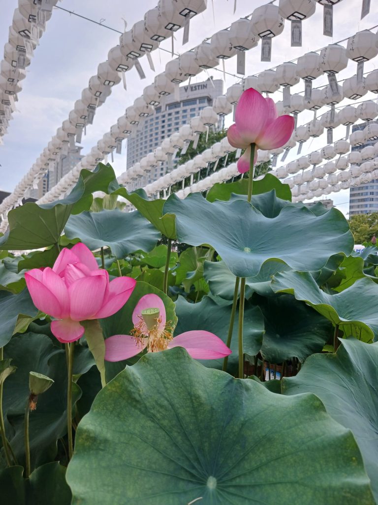 AVM’de birkaç saat geçirdikten sonra Bongeunsa Budist Tapınağı’na geçtik. Büyük Buda heykeline doğru yürürken lotus çiçekleri karşılıyor sizi.