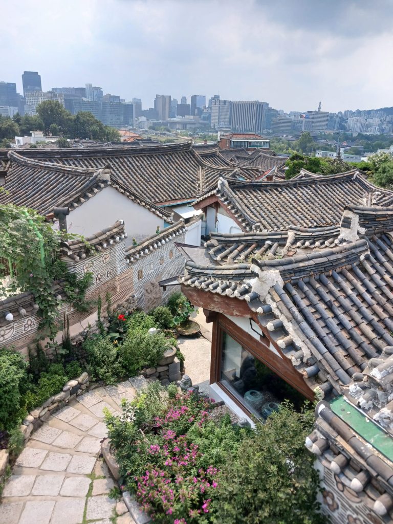 Seoul’un Jongno-gu bölgesindeki Gyedong-gil’de yer almakta. Hanok, Kore’nin geleneksel konaklarına verilen ad. Geneli bugüne kadar özenle korunmuş, bir kısmı restore edilmiş köy evleri mimarisi ve bahçeleriyle sizi büyülüyor. Eski ve geleneksel kapı ve pencerelere olan ilgim nedeniyle keyifle gezdiğim, bol bol fotoğraf çektiğim ve çektirdiğim bir bölge oldu. Köyü gezerek yukarı doğru çıktıkça Seoul’un modern manzarasıyla tezat oluştursa da, eski ve yeni Seoul’un nasıl bütünleştiğine hayranlıkla tanıklık ediyorsunuz.